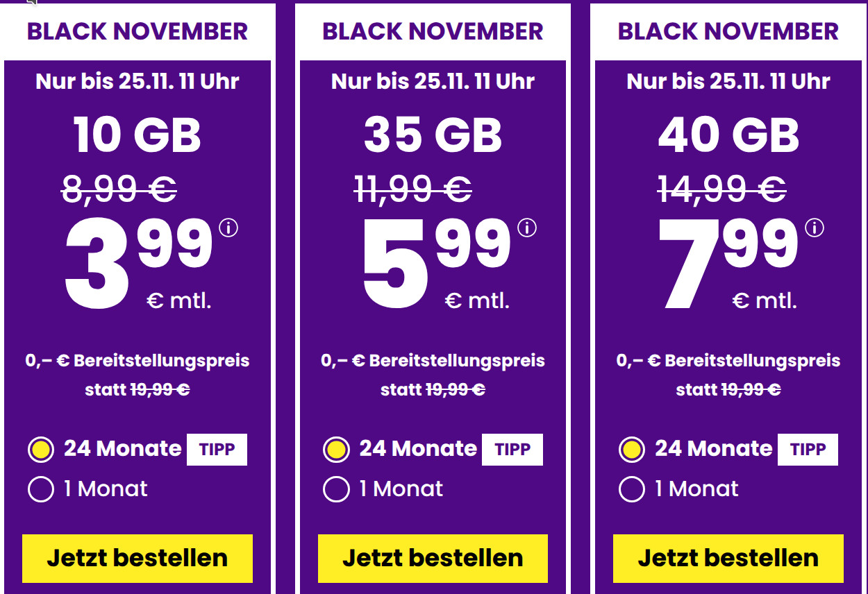 Preisvergleich 10 GB Handytarife: Die besten 10 GB Handytarife ab 3,99 Euro ab dem 22.November