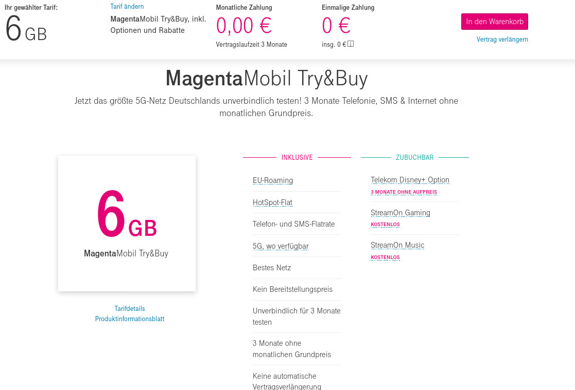 from Telefontarifrechner.de https://www.telefontarifrechner.de/Gratis-Telekom-Tarif:-6-GB-MagentaMobil-Try&Buy-Tarif-kostenlos-für-3-Monate-news23855.html