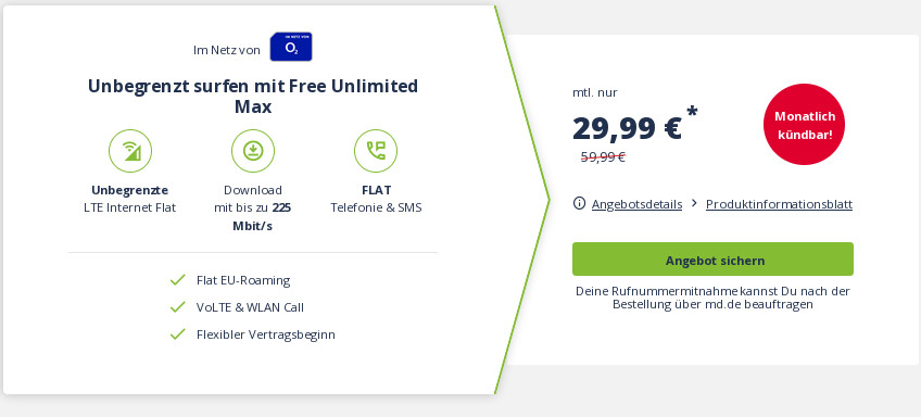11.02.21 Ab sofort gibt es bei mobilcom-debitel die LTE Tarife mit ordentlichen Rabatten. Dabei gibt es für unsere Leser die mobilcom-debitel LTE Tarife im LTE Netz von O2. So gibt es einen 12 GB All-In-Flat Tarif dauerhaft für monatlichen 10,99 Euro statt 24,99 Euro bei einer monatlichen Laufzeit. Wir zeigen Ihnen -wie immer- alle Features der neuen mobilcom-debitel LTE Tarife Aktionen auf.
