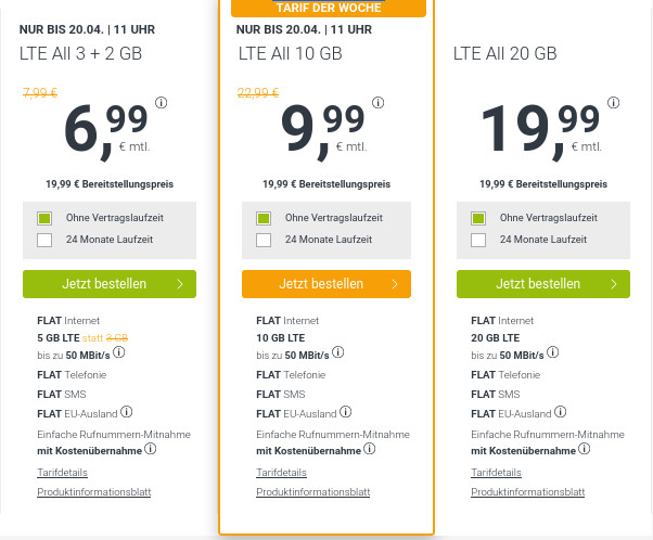 Preisvergleich 5 GB LTE Tarife: Die besten 5 GB LTE Spar-Tarife zum April-Wochenende ab mtl. 6,99 Euro