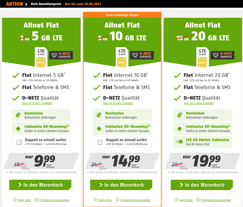 03.06.21 Auch im Juni sparen unsere Leser den Anschlusspreis bei den beliebten Klarmobil Tarifen mit einer All-In-Flat im Telekom Netz bei der neuen Klarmobile Tarife Aktion. Die Anschlusspreisbefreiung gilt nun bei einer Bestellung bis zum 26.Juni 2021. Weiterhin gibt es ...mehr