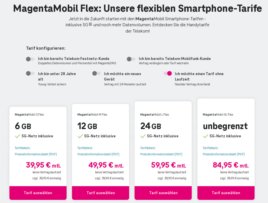 Neue Telekom MagentaMobil Flex Tarife: MagentaMobil Flex Tarif ohne Laufzeit und ohne Aufpreis