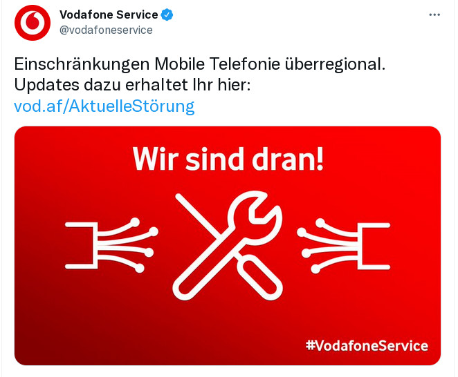 10.02.22 Derzeit gibt es laut Vodafone und auch Vodafone erhebliche Störungen ab 10 Uhr im Mobilfunknetz. So hatten dabei viele tausend Kunden von Vodafone dieses auch bei allesstörungen gepostet. Auch Vodafone hatte die Störung bestätigt. Die Störung bestehen überregional, wie es verlautet. Weitere Details sind nicht bekannt.