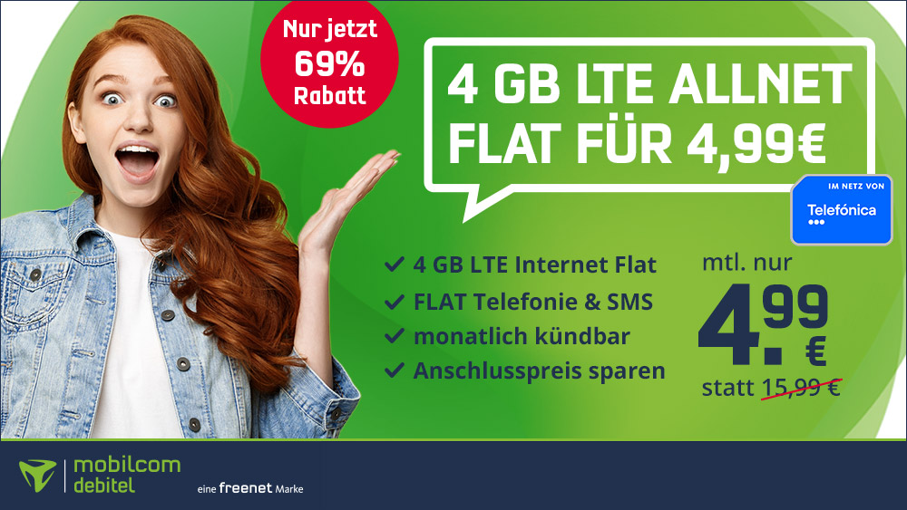 04.03.22 Zum Start in das Wochenende gibt es beim Anbieter mobilcom-debitel den Valentinstag-Deal mit ordentlichen Rabatten. Dabei gibt es für unsere Leser die mobilcom-debitel Vodafone LTE Tarife mit viel Rabatt und Datenvolumen im LTE Netz. So gibt es einen 4 GB All-In-Flat Tarif ...mehr