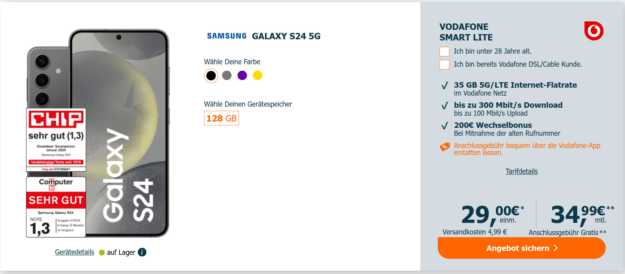 Preishammer Galaxy S24 Tarife: 35 GB Vodafone Allnet-Flat für 34,99 Euro/ Eff. -0,05 Euro
